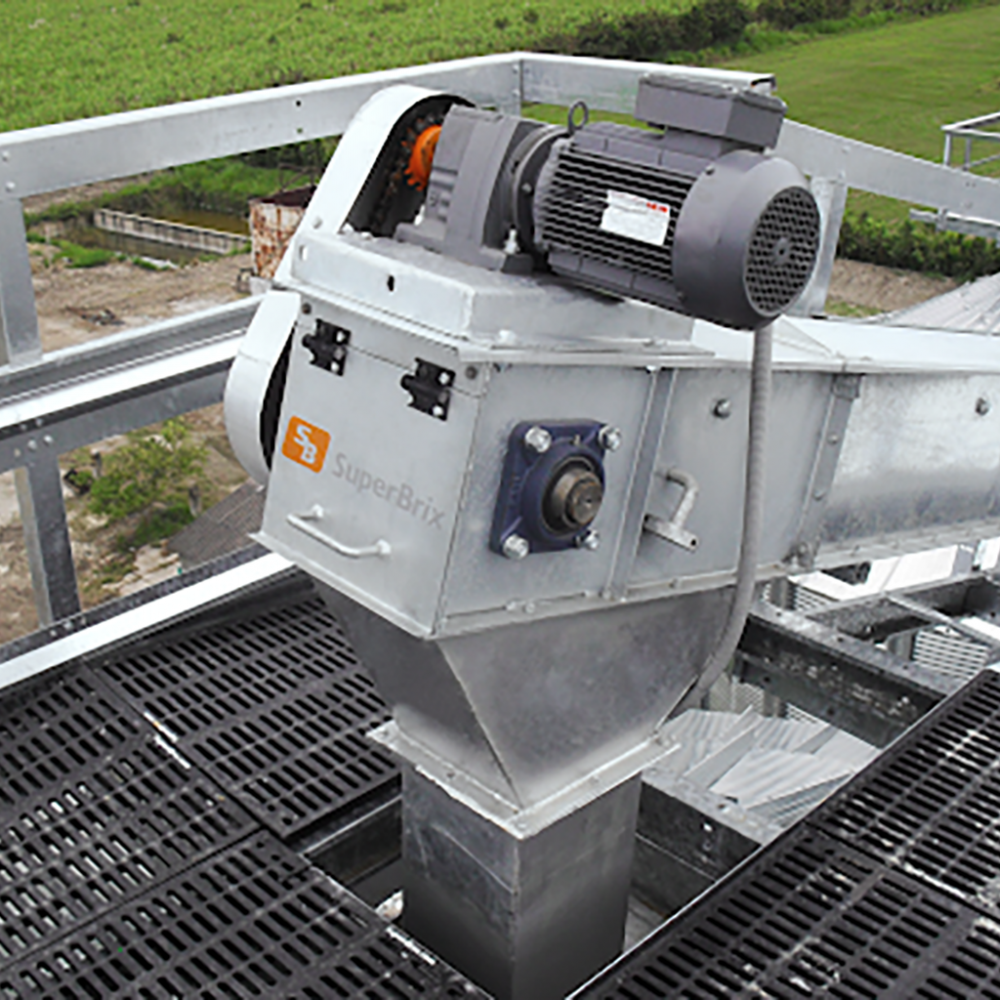 The TA en mass chain conveyors are designed to convey large amounts of product with gente linear speed, this type of conveyors are specialized in fragile products such as grains and cereals in horizontal and low inclination applications, the inclinations could be in a single line or in an inclined section.