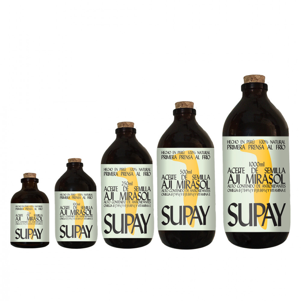producto alimenticio constituido principalmente por ácidos grasos, destacando los ácidos grasos poliinsaturados (ácido linoleico), polifenoles (Tocoferoles y carotenos) y la presencia de Capsaicina (Alcaloide exclusivo del género Capsicum) obtenidos únicamente de fuentes vegetales, en este caso del ají amarillo (Capsicum baccatum). Se mantiene en estado líquido a temperatura ambiente, tiene un color amarillo/dorado común en los aceites y un aroma almendrado. El aceite vegetal comestible se encuentra en su forma pura aceite proveniente de una sola materia prima Capsicum baccatum.